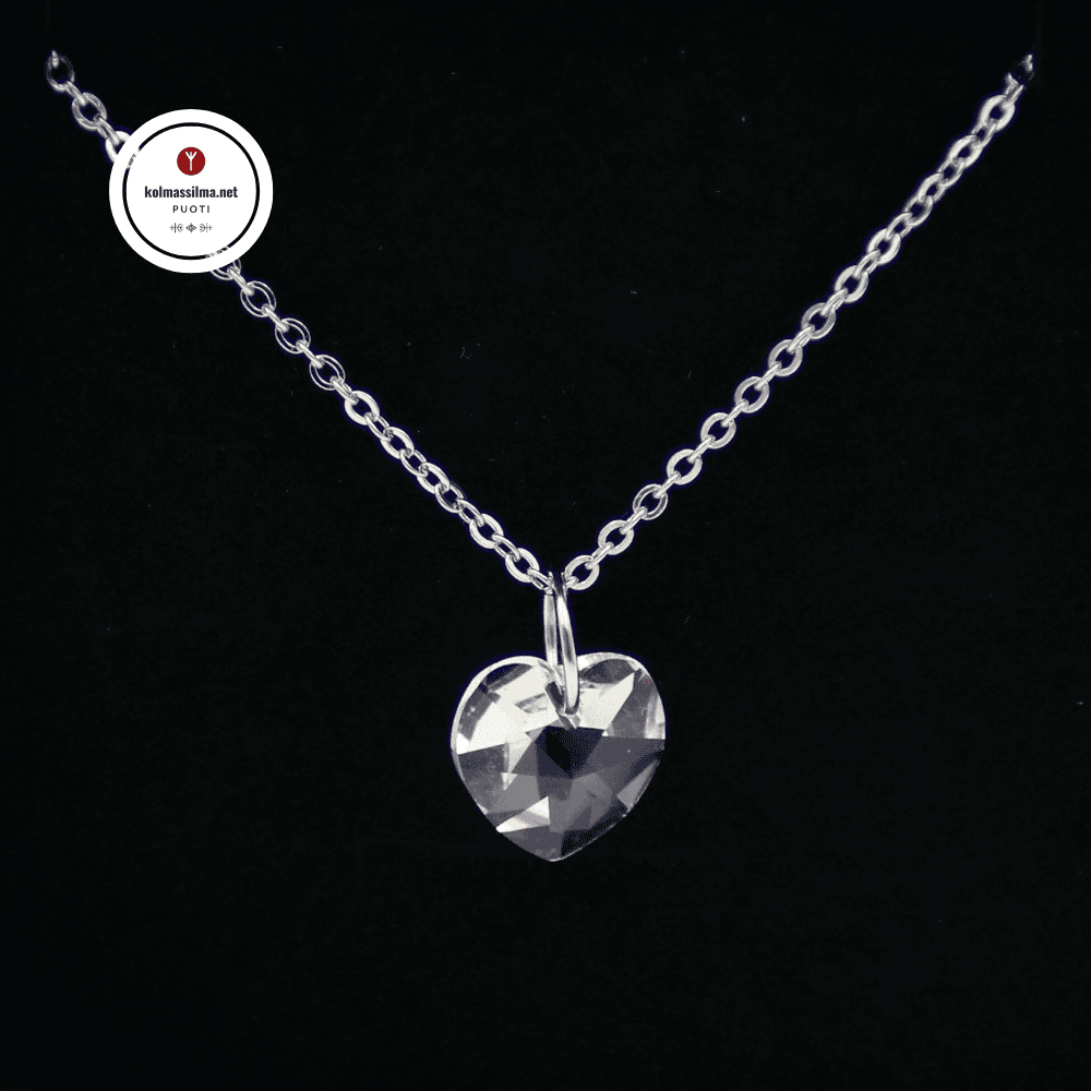 Sydän on tsekkiläistä lasia, ketju on tehty Suomessa.