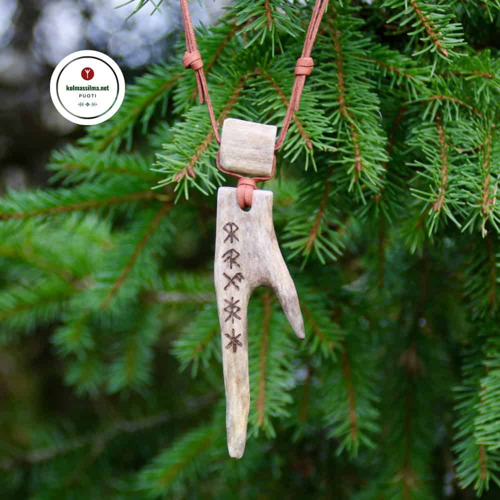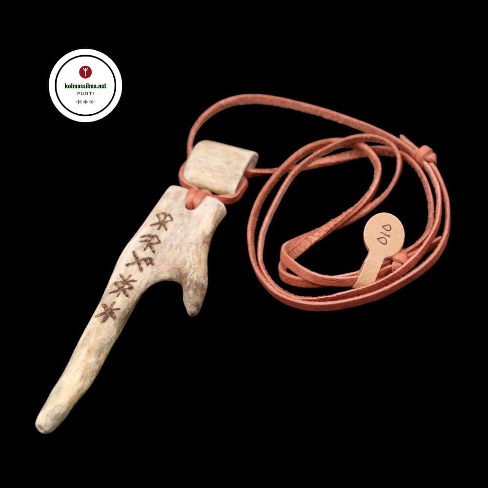 bSS Poronsarvi Amuletti Riimusymboleilla UniiKKi #010 (10 cm) poronnahka kaulanauha