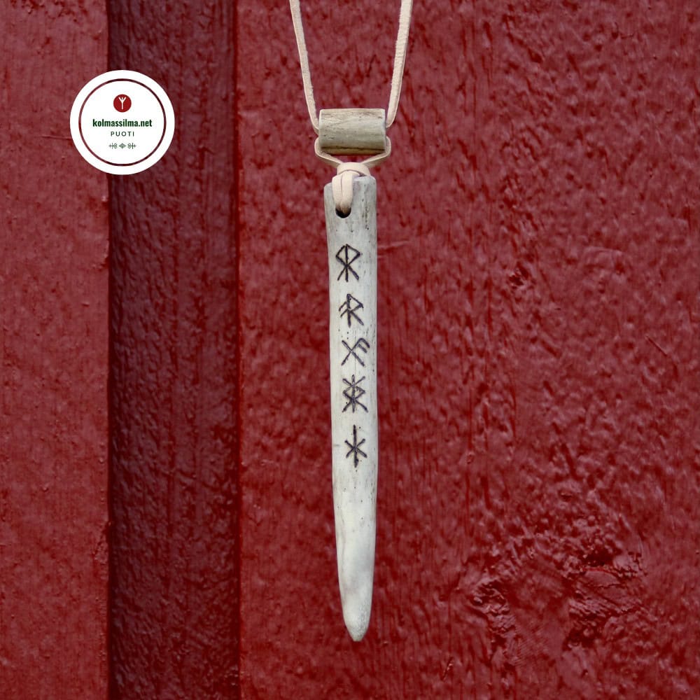 Riimusymbolit / sidosriimut ylhäältä alas: Rohkeus (Courage), Elinvoima (Energy), Onni (Good Luck), Suojelu (Protection), Vahvuus (Strenght)